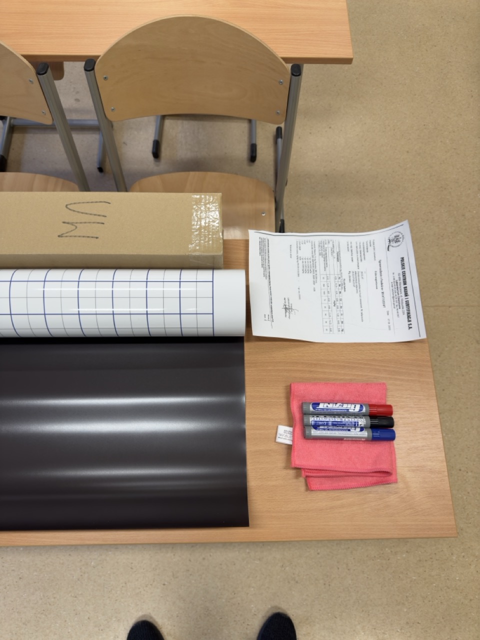 - 3 markery do tablic suchościeralnych (czerwony, niebieski i czarny)